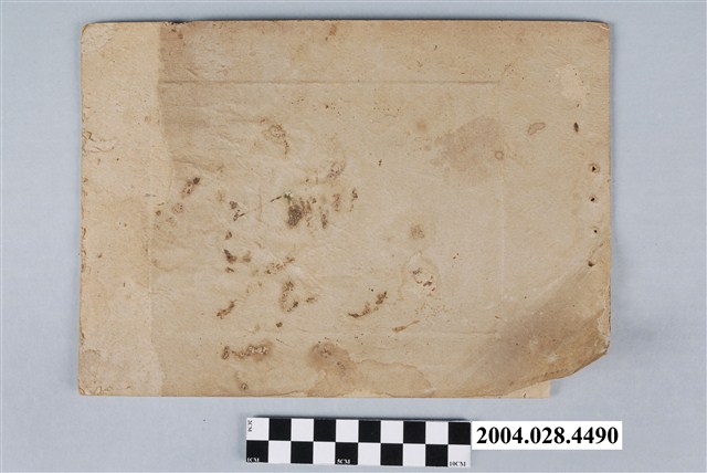 1.本物件為臺南州新營水勝寫真館拍攝全家福照,物件照片由紙板夾著,照片畫面中有2名成人,站在最右邊的為男性左手插在褲子口袋中右手扶著椅子,而站在椅子後方的為女性,畫面中還有2名小孩其中一個坐在椅子上。