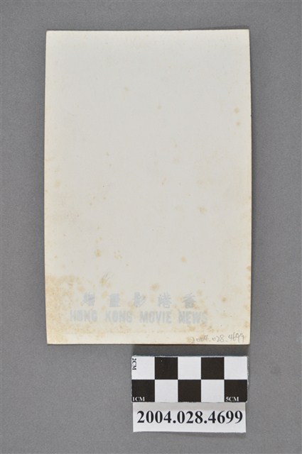 1.香港電影明星胡燕妮大頭黑白贈獎照片,直式單面,她梳著高高的公主頭,身穿襯衫,雙眼直視前方面露淺淺的微笑,面容秀麗卻又展現清純的氣質,正面版面保存情況不佳,整個版面多有泛黃,左下角則以藍筆簽親「胡燕妮」,狀況不佳,背面全白,為底部用藍色墨水蓋印「香港影畫贈」,下面泛黃黃點居多,狀況不佳。2.此照片為香港影畫報贈獎的照片,取胡燕妮加入邵氏影業1966-1982時期的劇照,為中德混血,以《何日君再來》爆紅,後參與《新不了情》、《殺人玫瑰》等電影。