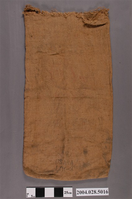1.本件GREAT SOUTHERN牌鹽味酪蛋白麻布袋係以麻類植物纖維製成細線後,再編織成布片縫製而成,以單幅麻布片採短邊疊合對折後,以短邊作開口,於2側長邊緊密縫合完成,呈長48.3公分,寬91公分,高0.2公分之直式長方形袋。外觀呈現麻纖維之原色,即為黃褐色。麻布袋作單面紅、藍印刷均為英文,上端以紅字印有禁用手鉤-保持乾燥之英文,下接「GREAT SOUTHERN」藍字品牌名稱,中段處以桂冠圓環作框,內置火炬與星星圖樣為商標,下接「HYDROCHLORIC CASEIN」商品名稱。底緣處則標示有重量與生產國家名稱。麻布袋背面下端處則以戳章蓋印有「OSAKA K-3」為大阪之羅馬拼音。2.麻布袋為傳統裝盛用具,實用性高且用途廣泛,主要用來裝盛各類貨物方便堆疊運輸。