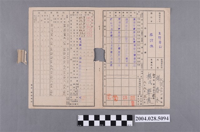 本件為日治時期國民學校家庭通信簿,紙質,使用時間不詳,使用者為楊氏翠霞,編號為38號,根據封面「國民學校」字樣,推測應是1941-1945年間使用。 家庭通信簿,如同現今國民小學的家庭聯絡簿,通信簿登載學童在校之事項,例如學業、出缺席、健康狀況以提供家長作為家庭教育之用,學童必須每日攜帶通信簿到校,若家長對於學校有疑問或要求,可以使用通信欄向學校溝通。