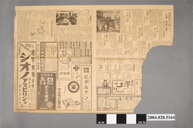 此為1935年(昭和10年)3月29日《臺灣日日新報夕刊》第1至4版,內容計有〈處置を延引せば相當の方法を講ず 機關說問題に對し、陸相を各參議官も激勵〉、〈あすの閣議で陸相から第一聲 機關說絕滅問題に關し〉、〈倒閣運動の具に利用されるを警戒〉、〈南洋群島に對する態度は確乎不動 海軍は無言の靜觀〉、〈內閣審議會委員の下銓衡〉、〈政友會の議員總會〉、〈海軍兵員充實案米下院で可決 沿岸防備支出も〉、〈支那陸軍官制の改革案を可決 蔣氏を上將特級にし 事實上の大元帥に〉、〈朗らかな人生〉(光明靜夫)、〈室田校長を呼んで詳細に事情を聽く 藤田州教育課長が入試問題誤謬で〉、〈遺憾に思ふ 更らに詳細に調查藤田教育課長語る〉、〈昨夜老松町の空家が全燒〉、〈火事に驚いて 娘さん急死〉、〈今曉の雷雨 基隆市民は喫驚〉、〈電柱薙ぎ倒さる〉、〈鶴岡、赤塚兩氏を召喚取調べ 五十萬元事件で〉、〈匪賊三百と中門〇隊激戰 伍長一名壯烈な戰死〉、〈ボスト火事 少年の惡戲から〉、〈廈門ギャングは匪賊くつれ 賭博場は斷乎禁止 田島廈門領事館警察署長談〉、〈臺北軟式野球準決勝三十一日舉行〉、〈親鸞勝人(164)〉(吉川英治)、〈本社主催廣瀨七段歡迎圍碁會戰譜〉(七段廣瀨平治郎、先二子二子番:四段橋本國三郎)、〈新竹臺中兩州流腦 恐影響今秋博覽會〉、〈臺南市政調查會閉會式〉、〈臺北第二高女試驗問題誤謬 教育界空前失態〉、〈米價低落〉、〈政民畫策提攜 料政局四五月動搖〉、〈國民中學成立有望 受業料比較的高貴〉、〈基隆中央市場創立總會〉、〈內臺豆粕價格驟昂〉、〈員林芭蕉檢查事務所火災損害約一千圓〉、〈新興製糖會社社長專務兩派紛爭愈烈〉、〈專賣局特設館 協議意匠不劣他館 博覽會中增一異彩〉、〈新公園南方半分設迎賓館演藝館〉、〈籌開駐歐大公使 全華總領事南米公使會議 立經濟外交策〉、〈臺北州教化聯教化大會〉、〈竹市腦炎案先豫防注射人數三萬〉、〈下淡水溪治水豫算增四十萬元〉、〈發動機東泰丸疑金密輸然無何等證據〉等等,另有多項商品的廣告。 此物件代表的《臺灣日日新報》為臺灣日治時期創辦,並偏向日本官方立場的報紙,也被稱為總督府的「御用報紙」。《臺灣日日新報》並非日治時期最早創辦的報紙,是由1896創辦的《臺灣新報》以及1897年創辦的《臺灣日報》合併而成。其後《臺灣日日新報》與《臺南新報》、《臺灣新聞》共三報被合稱「臺灣三大御用新聞」,同時也是臺灣當時最大的報社,最終在日治末期的1944年將臺北《臺灣日日新報》、《興南新聞》、臺中《臺灣新聞》、臺南《臺灣日報》、高雄《高雄新報》、花蓮《東臺灣新報》五大報合併為《臺灣新報》,而在戰後《臺灣新報》被國民政府接收改為《臺灣新生報》。(何義麟,2015:26-27) 日治時期的臺灣報紙,就發行機構的性質可分為官、民兩類。在官方方面,有總督府發行的《府報》,以及各州、縣、市、庄等地方政府發行的地方報,如:《臺北州報》。民間方面則有言論親近官方的《臺灣日日新報》、《臺灣新聞》、《臺南新報》,而貼近民眾立場的報紙則以《臺灣民報》為代表。由於總督府嚴格的出版限制,使得報刊出版門檻甚高,得以籌辦刊物者通常為財團、大型組織或具備豐厚資產者。