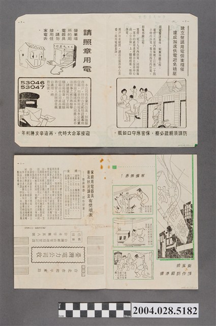 本物件為「臺灣電力公司用戶通訊」第67期,共有兩張,內容為提醒用戶颱風季節到了須小心用電,並且有張家庭電器普及狀況調查表,及說明公司有甚麼服務項目。