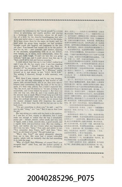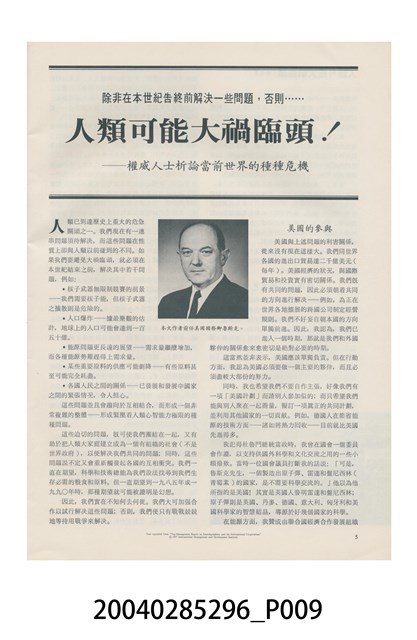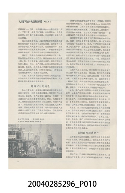2.今日世界為今日世界出版社出版之雜誌,該出版社設立於西元1952年,由美國新聞處成立,位於香港。該年代正值美蘇冷戰時期,該出版社透過大量翻譯美國文學名著、發行《今日世界》雜誌介紹美國史地與世界之關聯,藉以宣揚美國文化,該雜誌偶會刊登知名的中文創作。