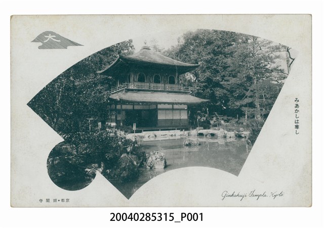 本物件以銀閣寺為主題,黑白樣式。正面為銀閣寺全景之圖像,銀閣寺為兩層樓日式建築,旁有一池塘,該圖像外框為扇形。明信片右側以漢字與日文書寫「みあかしは尊し」。右下方以英文字母書寫「Ginjakuji Temple Kyoto」。左下方以漢字書寫「京都 銀閣寺」。背面右上角為郵票黏貼處,該處有一熱氣球之圖示,圖示內以英文字母標示「TANAKA&Co」明信片右側有以漢字、平假名書寫之「郵便はがき」,上方以英文字母書寫「POST CARD」。