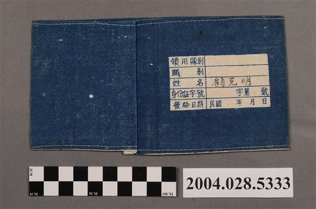 本件為高雄市民防指揮部空襲服務證臂章,布料製作,底色為藍色,單位字號:為高防第66560號,讓民防指揮部的空襲服務員戴在手臂上,作為識別之用。
