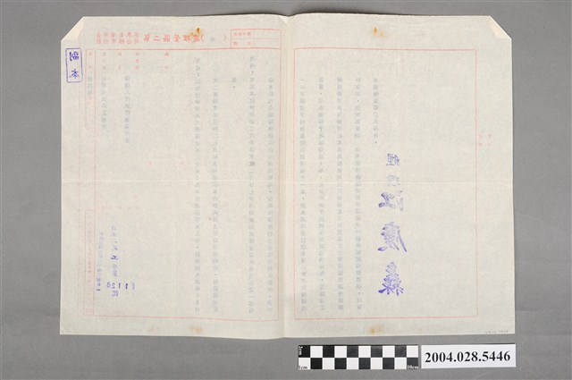 1.本物件是1份公文副本,受文者是臺灣省公共工程局,發文者是臺灣省自來水股份有限公司第二區管理處,副本收受者是陳查某女士,內容大概是說陳查某女士在民國67年(1978年)2月25日申請書影印本1份。此案是由於陳查某女士共有土地之一部分由臺灣省自來水公司收購為興建尖山加壓站用地,而其殘留的土地無法耕作,看是要一併收購或是恢復原狀補償其損失,但結果是加壓站沒有要擴建,無須收購殘留土地,恢復原狀此案則請臺灣省公共工程局與陳查某女士協調合理解決。紙張邊角稍微折到,在邊邊有泛黃的痕跡,背面無字,但亦有泛黃痕跡。