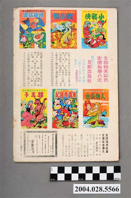 1.本件為伍寄萍編《蛇丈夫》,為一部中國民間故事漫畫,內容敘述女性與蛇變化成美男子結婚,表達出有情有義、因果善報的故事。蛇丈夫或蛇妻與人類結婚,是民間故事相當常見的題材。封底有民國66年(1977)7月20日國立編譯館連環圖書畫審定執照的合格圖樣。2.漫畫是以圖像為呈現,具備繪畫、敘事、角色三要素,能因敘事而令圖像帶有個別意義、令作品內容獨立且完整的資訊載體。臺灣漫畫史上,民國55年(1966)實施「編印連環圖畫輔導辦法」嚴重衝擊漫畫創作,至民國76年(1987)解嚴,終止審查制度進入嶄新興盛的局面。