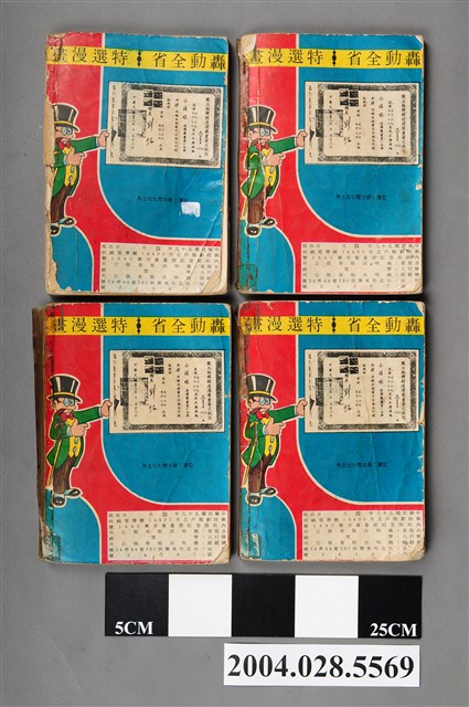1.本件為玉郎《小獨眼》全4集,為一部中國武俠英雄漫畫,敘述主角小獨眼身懷武藝,扶傾濟弱、斬奸除惡的故事。封底有民國58年(1969)2月28日國立編譯館連環圖書畫審定執照,由義明出版有限公司出版、王興炫編。2.漫畫是以圖像為呈現,具備繪畫、敘事、角色三要素,能因敘事而令圖像帶有個別意義、令作品內容獨立且完整的資訊載體。臺灣漫畫史上,民國55年(1966)實施「編印連環圖畫輔導辦法」嚴重衝擊漫畫創作,至民國76年(1987)解嚴,終止審查制度進入嶄新興盛的局面。