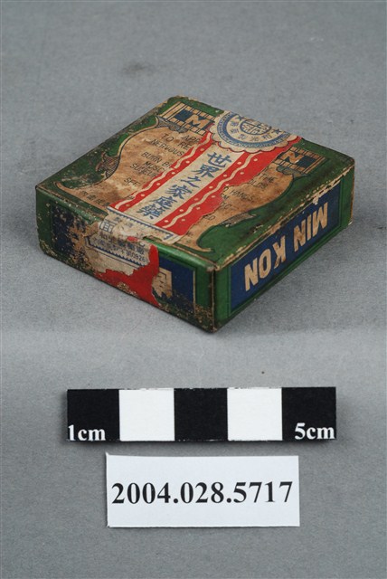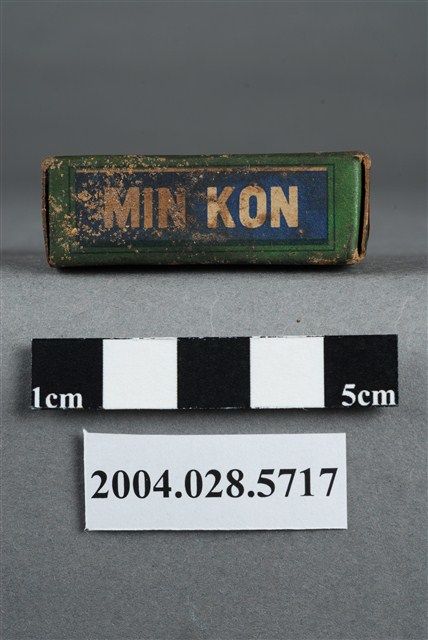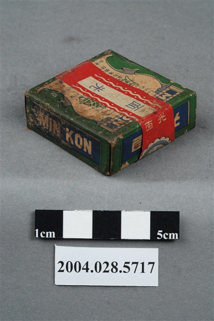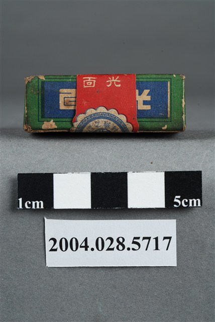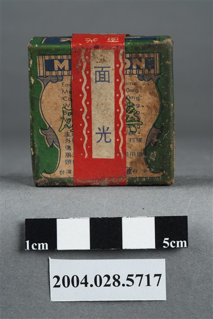 1. 本物件為面光。包裝為紙盒,紙盒外側有一封條包住,遮住一部分紙盒標示。封條為上印有世界之家庭藥和面光字樣,封條接口處有封緘貼住,封緘印有和光製藥廠等字樣,封條上另貼有一標籤紙,上有內衛成製字第0926號字樣。盒面印有成藥、面光和MIN KON等字樣與效能等內容。封條遮住效能,無法辨識。