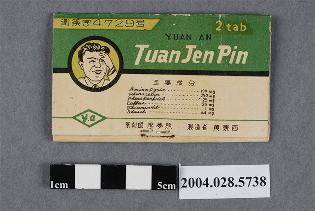 2. 本產品標有衛藥字4729號,應為二戰之後的產品,但在衛生福利部食品藥物管理署查無此藥資料。