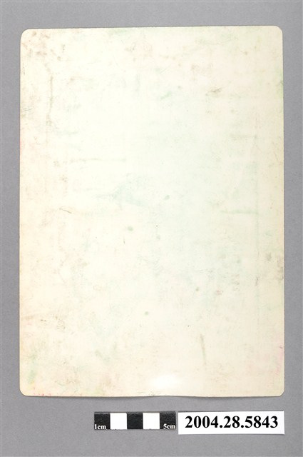 本文物為16K學生墊板,長方形,塑膠製,正面有太空人登陸月球圖案,兩個太空人在月球上,一位在豎起三腳架,另一位捧著實驗箱,遠方背景是地球。背面則為空白。
