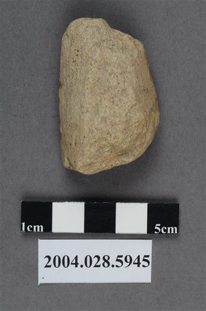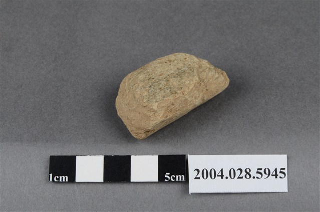 1.本件為花蓮支亞干遺址採集之石鎚,材質為灰色片岩,長4.8cm、寬3.1cm、厚1.6cm,器形近方形,器身兩側經過整磨,但其他部分保留石材原狀。兩端均經過錘擊使用。2.石鎚常見於臺灣的史前遺址,為史前人類用作敲碎獸骨或貝類等物品的工具,使用時直接抓握在手上使用,另可做釘錘使用。