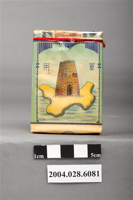 3.金門牌香菸,為臺灣戰後之香菸品牌,為展現抵抗共軍前線之穩固,以頑強碉堡作為意象。