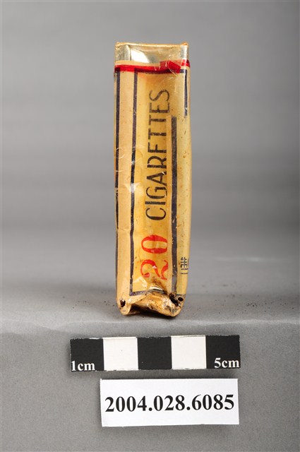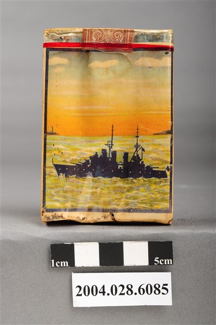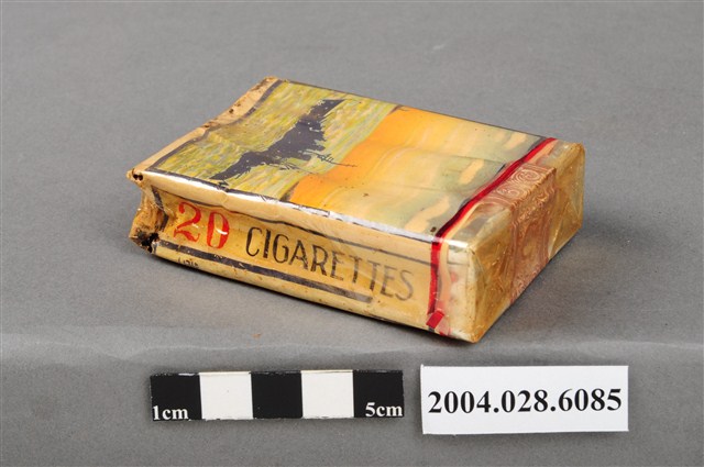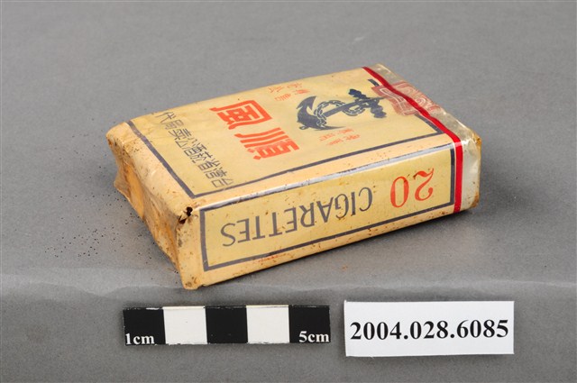 1.本物件為「臺灣省菸酒公賣局代製順風香煙」,為公賣局代製的軍煙,白色包裝,正面圖案為一個藍色船錨,兩邊印有文字「海軍專用、轉售充公」,中央印有「順風」,下方文字為「台湾省菸酒公卖局代」。兩旁各印有文字「20 CIGARETTES」,背後圖案為晚霞中行駛的船艦。上方封口處貼有淺紅色貼紙,中間圓形圖案印有數字和英文文字「20、CIGARETTES」。