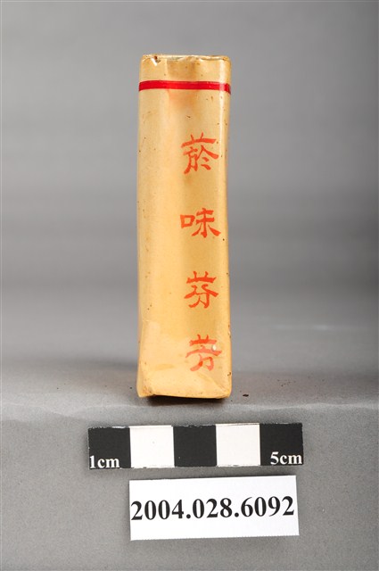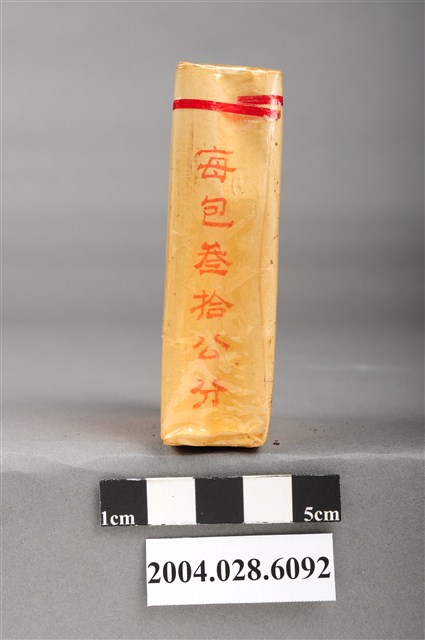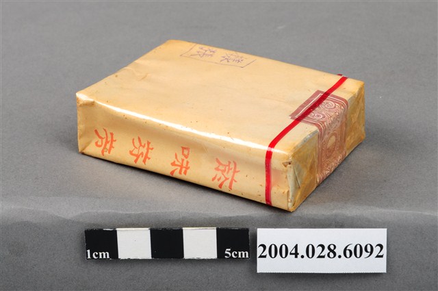 1.本物件為臺灣省菸酒公賣局出品特製芙蓉菸絲,為紙盒包裝,為四方體,其主要標示面中,其中一面有白色花朵與枝條圖樣,並有「特製芙蓉」、「台灣省菸酒公賣局」暗紅色字樣,另一面無圖案與字樣,僅左下有方形深藍色蓋印「樣張」字樣,其側邊兩面其中一面有「每包叁拾公分」紅色字樣,另一面有煎味芬芳紅色字樣,菸盒開封處有紅色紙條黏貼封住,物件有塑膠包裝所包覆。