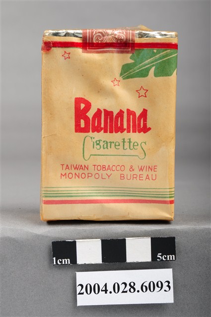 3.香蕉牌香菸,為臺灣戰後初期出現之香菸品牌,為承襲日人的舊有產品「曙」換改包裝而成,以香蕉作為圖像主體,呈現出臺灣之純樸農村意象。