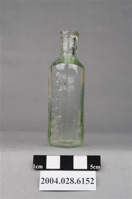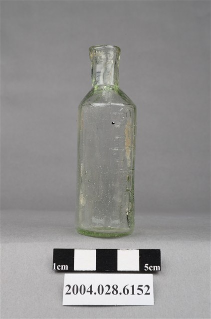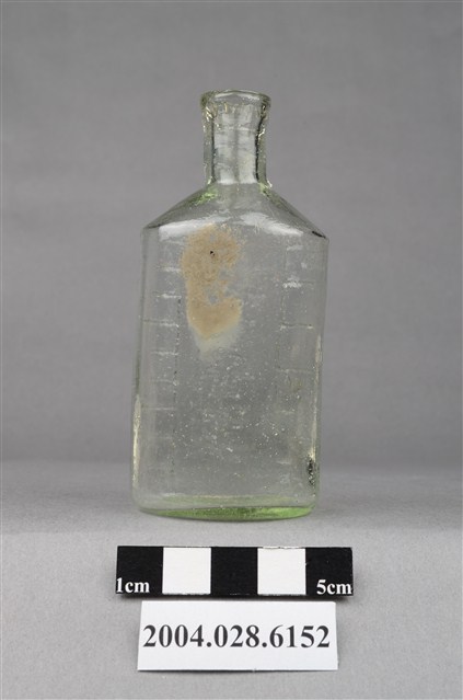本物件為玉井廖醫院玻璃瓶。瓶身透明無色,無蓋。瓶身有玉井廖醫院、60之凸起字樣與刻度。
