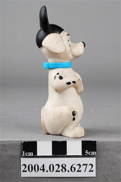3.此物件故事背景為華特迪士尼的動畫電影101忠狗,於1961年上映,為第17部華特迪士尼動畫長片。故事內容改編自Dodie Smith的《The Hundred and One Dalmatians》,故事內容描述一對大麥町狗夫妻彭哥(Pongo)與白珮蒂(Perdita)產下了許多小狗,但之後被迷戀黑白斑點的庫伊拉(Cruella)偷走之後發生的一連串冒險故事。