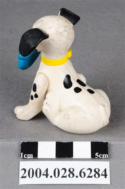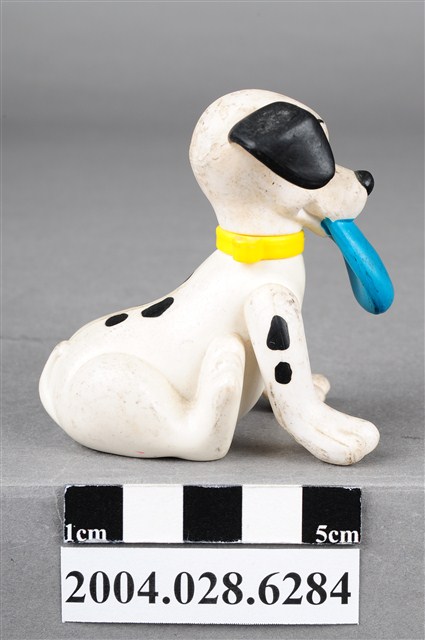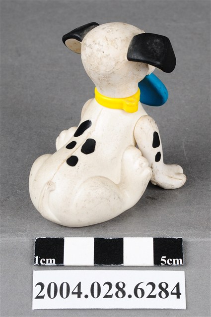 3.此物件故事背景為華特迪士尼的動畫電影101忠狗,於1961年上映,為第17部華特迪士尼動畫長片。故事內容改編自Dodie Smith的《The Hundred and One Dalmatians》,故事內容描述一對大麥町狗夫妻彭哥(Pongo)與白珮蒂(Perdita)產下了許多小狗,但之後被迷戀黑白斑點的庫伊拉(Cruella)偷走之後發生的一連串冒險故事。