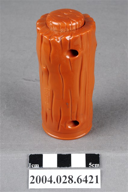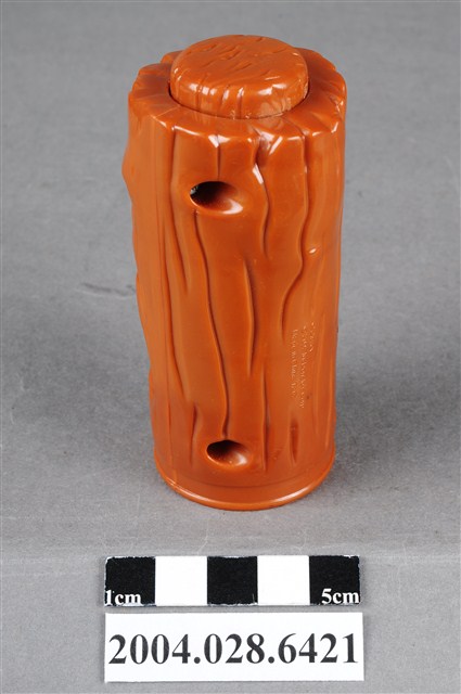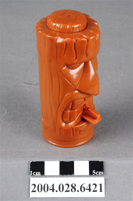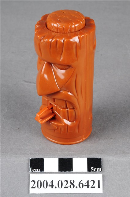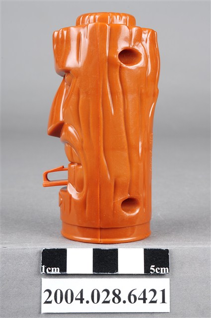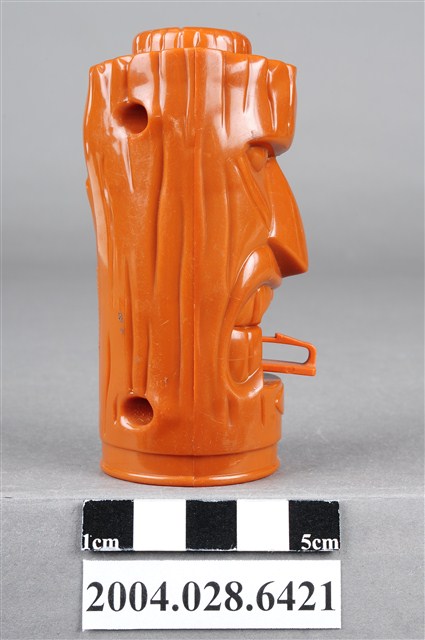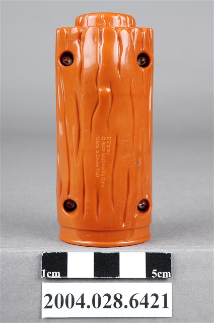 1.本物件為速食餐廳麥當勞玩具,塑膠材質。該物件乃麥當勞怒神頭之塑膠玩具,主要配色為棕色。該玩具外觀為一個具有發怒表情的頭像,周圍可見長短不一刻痕。其背面可見「Disney」、「2002」、「McDonald's Corp.」、「Made in China」、「TAG」字樣。