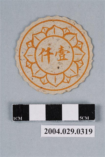 1.本物件為「小蜜蜂之小蜜蜂與瓢蟲尪仔標」。為一圓型花邊紙質尪仔標。正面圖樣為小蜜蜂與瓢蟲,右下角有紅色的「小蜜蜂」三字,四方皆有圖案,上方為撲克牌中的「方塊」圖樣,右方為象棋中的「象」,下方為生肖中的「虎」,左方為猜拳中的「布」圖樣,其中方塊為紅色,象、布與虎為藍色。背面中央為黃色的「壹仟」二字,周邊圍有一圈花瓣圍繞。