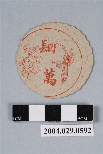 1.本物件為恐龍救生隊指揮塔尪仔標,呈圓扁狀,邊緣呈波浪狀,正面為紙質,中央圖案為動畫恐龍救生隊的指揮塔在攻擊恐龍,右上有翼手龍圖案,正面右方有「指揮塔」紅色字樣,正面上右下左各分別有「撲克牌-菱形」、「車」、「猜拳-剪刀」、「猴」圖案與字樣,「車」、「猴」皆為藍字;背面有為紅色錢幣圖樣,中央有「䦉萬」紅色字樣。本件與登錄號2004.029.0519、2004.029.0591、2004.029.0593-0224.029.0595藏品完全相同,並與2004.029.0604-2004.029.0605之正面圖案相同。