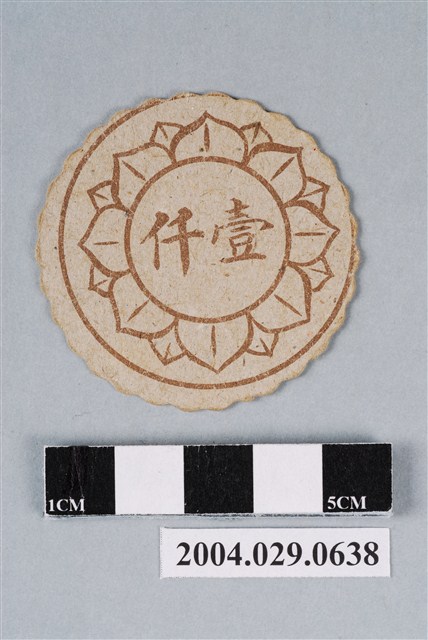 1.本物件為丁丁與平平尪仔標,為圓形花邊紙質卡牌,正面圖案右左兩邊分別為丁丁與平平,上方有藍字「丁丁平平」,由上右下左各圖案與字樣分別是「撲克牌-黑桃」、藍字「十二生肖-猴」、「猜拳-布」、藍字「象棋-車」;背面圖案為黑色蓋印有圓圈內有裝飾之「壹仟」圖案及字樣。