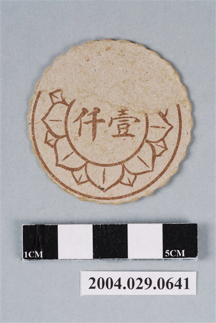 1.本物件為丁丁與平平之小飛與平平尪仔標,為圓形花邊紙質卡牌,正面圖案右左兩邊分別為平平與小飛,由上右下左各圖案與字樣分別是「撲克牌-方塊」、藍字「十二生肖-龍」、「猜拳-剪刀」、藍字「象棋-卒」;背面圖案為黑色蓋印圓圈內有裝飾之「壹仟」圖案與字樣,上半部已損毀。