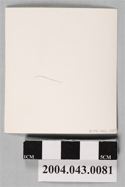 本物件為一女子獨影之照片,物件本體為一張直式、黑白照片,圖像中一短髮女子坐在藤椅上,雙手垂放在椅上,戴著一副墨鏡,身穿有領無袖白色上衣。本物件與登錄號2004.043.0080照片中人物相同。