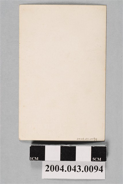 本物件為新畫像寫真館攝女子獨影之照片,物件本體為一張直式、黑白照片,圖像中一短髮女子呈坐姿,雙手垂放在腿上,戴著一副圓框眼鏡,身穿長袖大衣。本物件與登錄號2004.043.0095、2004.043.0096照片中人物相同。