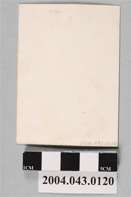 本物件為一小女童獨影之照片,物件本體為一張直式、黑白照片,圖像中女童坐於嬰兒椅上,睜大雙眼凝視前方,頭上綁著一條花色頭巾,身穿花紋洋裝。本照片與藏品2004.043.0119相同。