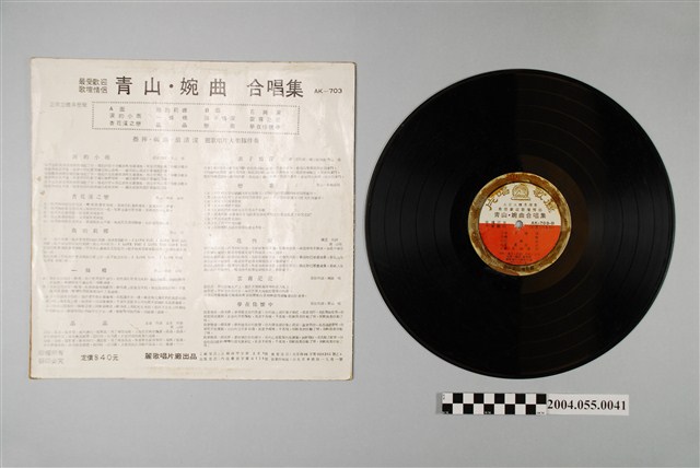 本件保存良好,為青山、婉曲所演唱的淚的小雨黑膠唱片,麗歌唱片廠發行,A面收錄淚的小雨、杏花溪之戀、我的莉娜、一條橋、晶晶,B面收錄浪子情深、戀歌、花與淚、雲霧茫茫、夢在你懷中。