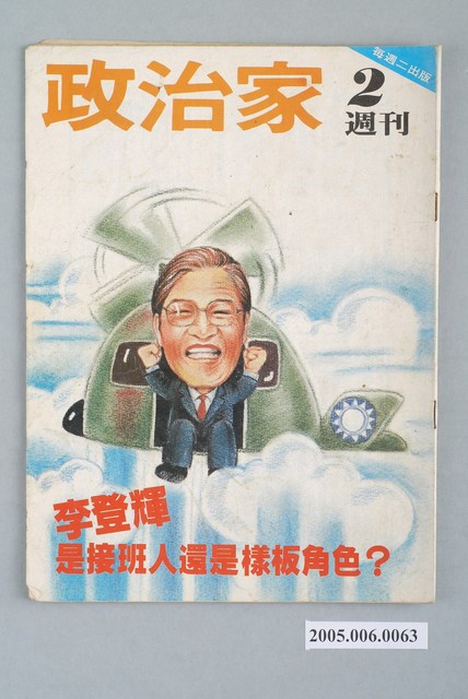 此物件為《政治家》雜誌,於1981年創辦,主要的創辦人為鄧維楨,相關系列刊物有《民主人》、《民主政治》、《民主叢書》、《觀察》等。鄧維楨為《大學雜誌》的創辦人,此雜誌於1960年代末期至1970年代初為臺灣社會帶來監督政府、社會改革的風氣,而到了美麗島事件後,造成民眾對政治議題的關心,鄧維楨也隨之創辦《政治家》雜誌,但因個人問題後改為弟弟鄧維賢負責,《政治家》主要介紹黨外人物,也加以介紹黨外的活動以及評論政治時局,有時也會述說黨外內部的爭議。 「黨外」一詞主要為非中國國民黨的臺灣政治勢力,而「黨外」政治勢力,主要的宣傳方式為「黨外雜誌」,「黨外雜誌」最早如1950年代的《自由中國》、1970年代的《大學》、《臺灣政論》,後在1980年代「黨外雜誌」發展蓬勃,代表刊物為《八十年代》與《美麗島》,最終,這股媒體趨勢在1986年民進黨成立、1987年解除戒嚴之後逐漸式微。「黨外雜誌」在當時激起了臺灣民眾的民主意識,也逐步促成了言論自由開放。(蕭淑玲,2006,153-155)。