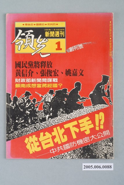 《領先新聞週刊》為1986年創刊的黨外政論雜誌,主要創辦人為蘇明偉、蘇銘輝。在週刊第一期的「編輯室通告」欄位中,說明《領先新聞週刊》自詡為非政論性的「新聞週刊」,嘗試用新聞觀點來觀察國內外政治現象,其次力求在黨派立場上保持中立,以「新聞」而非「政論」來吸引民眾。 「黨外」一詞主要為非中國國民黨的臺灣政治勢力,而「黨外」政治勢力,主要的宣傳方式為「黨外雜誌」,「黨外雜誌」最早如1950年代的《自由中國》、1970年代的《大學》、《臺灣政論》,後在1980年代「黨外雜誌」發展蓬勃,代表刊物為《八十年代》與《美麗島》,最終,這股媒體趨勢在1986年民進黨成立、1987年解除戒嚴之後逐漸式微。「黨外雜誌」在當時激起了臺灣民眾的民主意識,也逐步促成了言論自由開放。(蕭淑玲,2006,153-155)。