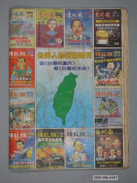 此件物件為《東北風》雜誌,為《蓬萊島》雜誌在「蓬萊島案」後的衍生刊物,為由黃天福、陳水扁、李逸祥等續辦,以《蓬萊島》第一期的刊頭語,便表示此刊物受到《美麗島》雜誌的影響,著重在報導臺灣的黨外新聞以及以黨外立場批判臺灣政治。「蓬萊島案」為《蓬萊島》雜誌在第2期發表的的文章中提出時任蔣經國英文祕書馮滬祥涉嫌「以翻譯代替著作」,剽竊他人著作,因而創辦蓬萊島的三人被控告誹謗,三人因而坐牢更賠償鉅款,但三人也因此被稱為「蓬萊島三君子」。 「黨外」一詞主要為非中國國民黨的臺灣政治勢力,而「黨外」政治勢力,主要的宣傳方式為「黨外雜誌」,「黨外雜誌」最早如1950年代的《自由中國》、1970年代的《大學》、《臺灣政論》,後在1980年代「黨外雜誌」發展蓬勃,代表刊物為《八十年代》與《美麗島》,最終,這股媒體趨勢在1986年民進黨成立、1987年解除戒嚴之後逐漸式微。「黨外雜誌」在當時激起了臺灣民眾的民主意識,也逐步促成了言論自由開放。(蕭淑玲,2006,153-155)。