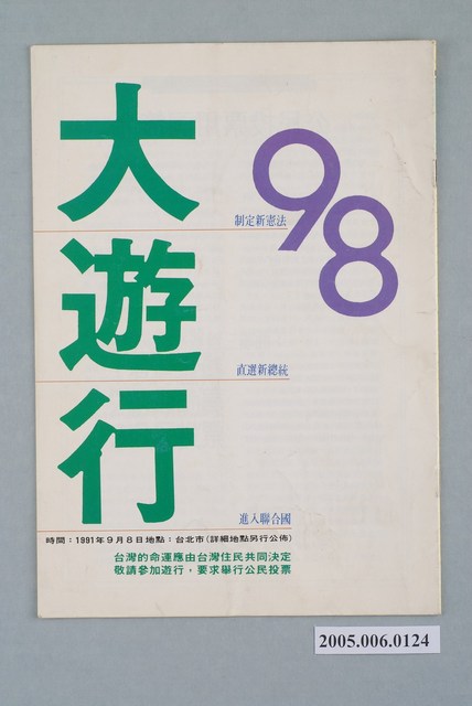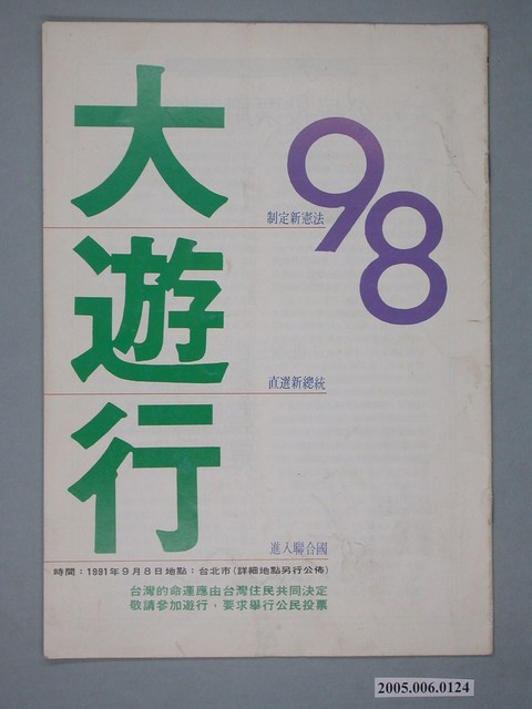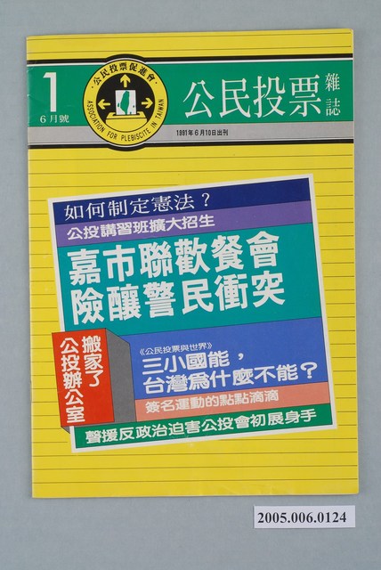 此物件《公民投票》雜誌為1991年創辦的「公民投票促進會」的相關雜誌,內容包含公民投票的介紹、舉辦、歷史、案例、提倡,並追求以公民投票的方式尋求臺灣獨立。「公民投票促進會」為長期支持臺灣獨立的蔡同榮於1990年創辦,此會的訴求即是訂立《公民投票法》,並以公民投票的方式決定臺灣未來的主權。 臺灣的《公民投票法》在2003年制定,但因公投通過要求投票率以及同意率都需過二分之一的「雙二一門檻」,而被稱為「鳥籠公投」,因而其後多數的公投都因此無法通過,後在2017年的修訂過後才降低門檻,另於2019年又修訂《公民投票法》,訂定公民投票日及提案相關事項。