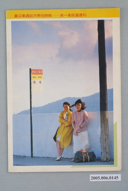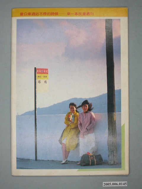 《民進周刊》為1987年2月19日創刊的黨外雜誌,創辦人為吳祥輝。此刊物曾陸續以《民進時代》、《民進廣場》、《民進天地》、《民進世界》等名稱出版,最終在1990年8月20日停刊。此刊物標榜「不是機關報」、「人民第一、民進黨第二」,另《民進周刊》雖然在政治立場與民進黨親近,但並非民進黨的附隨雜誌 「黨外」一詞主要為非中國國民黨的臺灣政治勢力,而「黨外」政治勢力,主要的宣傳方式為「黨外雜誌」,「黨外雜誌」最早如1950年代的《自由中國》、1970年代的《大學》、《臺灣政論》,後在1980年代「黨外雜誌」發展蓬勃,代表刊物為《八十年代》與《美麗島》,最終,這股媒體趨勢在1986年民進黨成立、1987年解除戒嚴之後逐漸式微。「黨外雜誌」在當時激起了臺灣民眾的民主意識,也逐步促成了言論自由開放。(蕭淑玲,2006,153-155)。