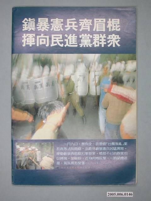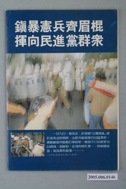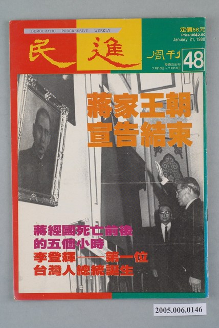 《民進周刊》為1987年2月19日創刊的黨外雜誌,創辦人為吳祥輝。此刊物曾陸續以《民進時代》、《民進廣場》、《民進天地》、《民進世界》等名稱出版,最終在1990年8月20日停刊。此刊物標榜「不是機關報」、「人民第一、民進黨第二」,另《民進周刊》雖然在政治立場與民進黨親近,但並非民進黨的附隨雜誌 「黨外」一詞主要為非中國國民黨的臺灣政治勢力,而「黨外」政治勢力,主要的宣傳方式為「黨外雜誌」,「黨外雜誌」最早如1950年代的《自由中國》、1970年代的《大學》、《臺灣政論》,後在1980年代「黨外雜誌」發展蓬勃,代表刊物為《八十年代》與《美麗島》,最終,這股媒體趨勢在1986年民進黨成立、1987年解除戒嚴之後逐漸式微。「黨外雜誌」在當時激起了臺灣民眾的民主意識,也逐步促成了言論自由開放。(蕭淑玲,2006,153-155)。