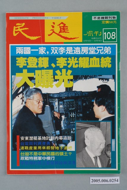 《民進周刊》於1987年2月19日創刊,創辦人為吳祥輝。此刊物曾陸續以《民進時代》、《民進廣場》、《民進天地》、《民進世界》等名稱出版,最終在1980年8月20日停刊。由刊物封面標語「不是機關報」、「人民第一、民進黨第二」可知,《民進周刊》雖然在政治立場與民進黨親近,但是並非隨附性的刊物。 「黨外」一詞主要為非中國國民黨的臺灣政治勢力,而「黨外」政治勢力,主要的宣傳方式為「黨外雜誌」,「黨外雜誌」最早如1950年代的《自由中國》、1970年代的《大學》、《臺灣政論》,後在1980年代「黨外雜誌」發展蓬勃,代表刊物為《八十年代》與《美麗島》,最終,這股媒體趨勢在1986年民進黨成立、1987年解除戒嚴之後逐漸式微。「黨外雜誌」在當時激起了臺灣民眾的民主意識,也逐步促成了言論自由開放。(蕭淑玲,2006,153-155)。 "