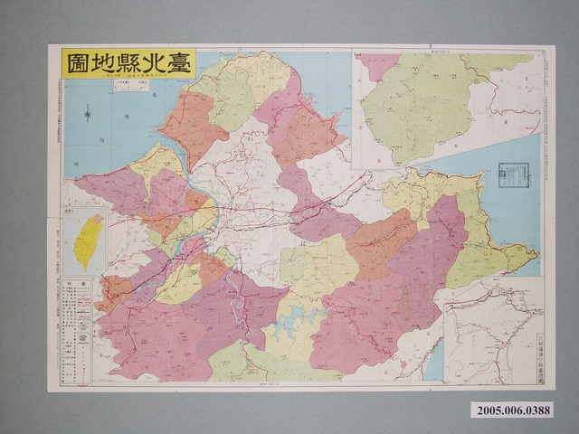 本件包含2幅地圖,正面為〈臺北縣地圖〉,比例尺十萬分一,背面為〈臺北縣九鄉鎮街圖〉,發行者為大輿出版社(周法平),1985年發行。