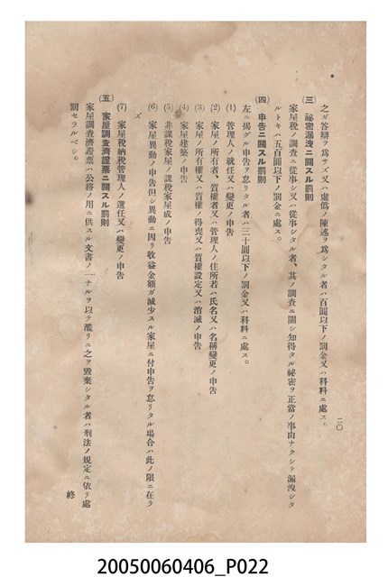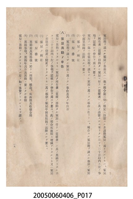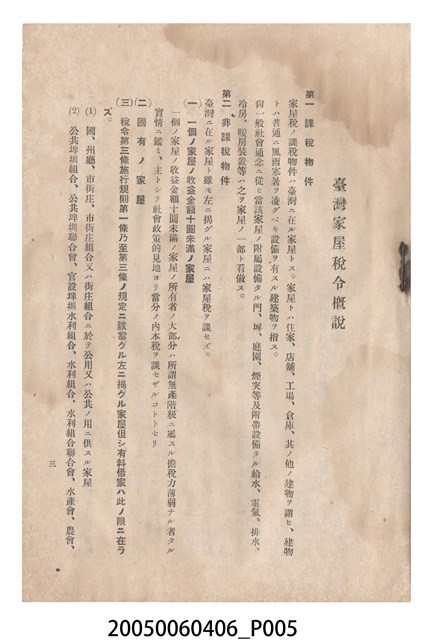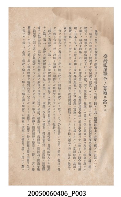 臺灣總督府發行《臺灣家屋稅令概說》