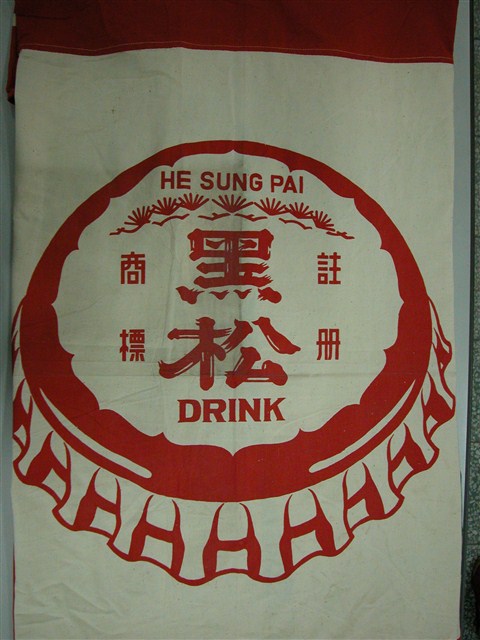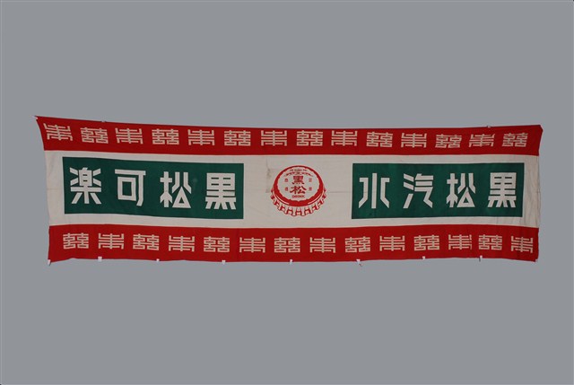 1.本物件為黑松廣告布條,布條長度甚長,上下各有紅底白色圖案裝飾,中間有黑松註冊商標,為一瓶蓋,兩側綠底方塊用白字寫有「黑松汽水」與「黑松可樂」字樣,色彩鮮明,保存完整。