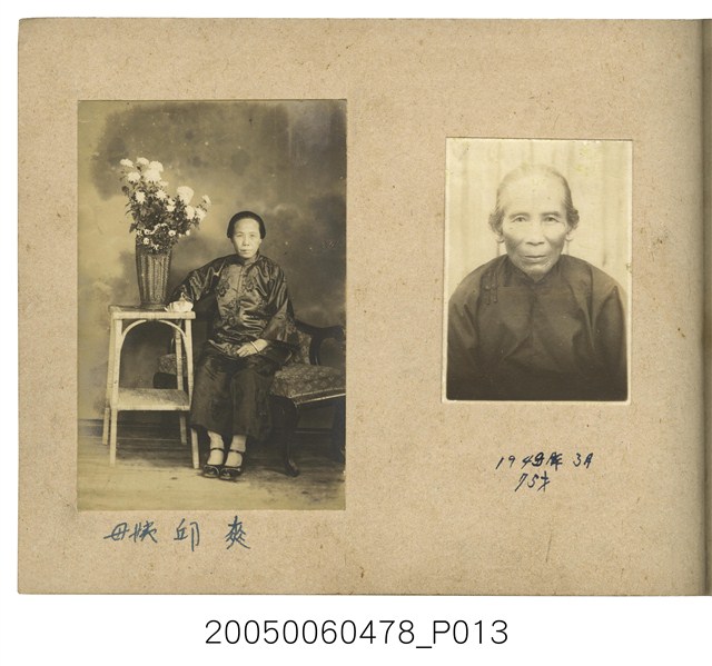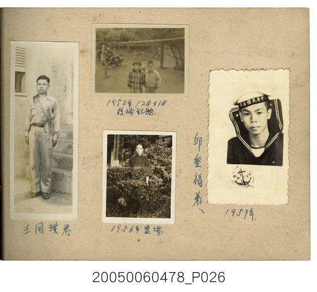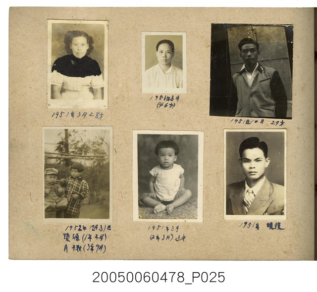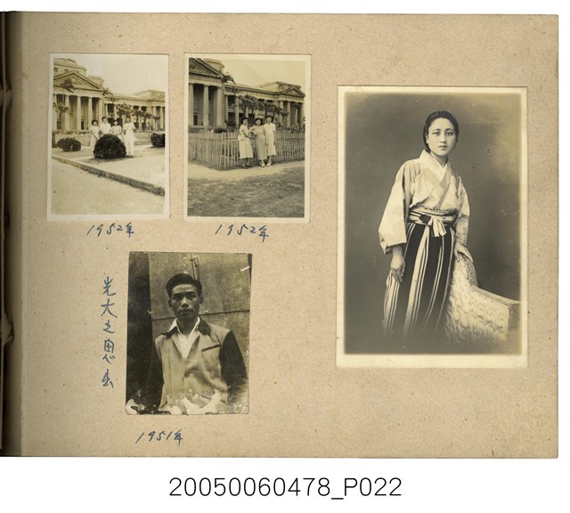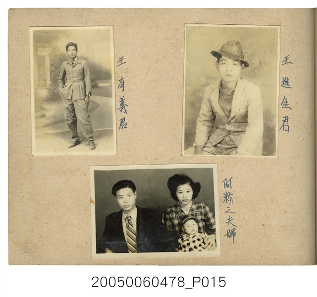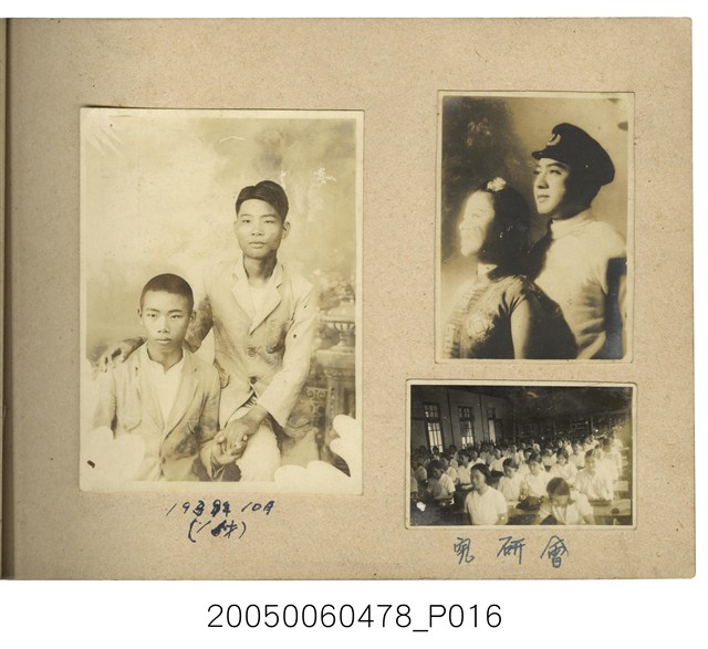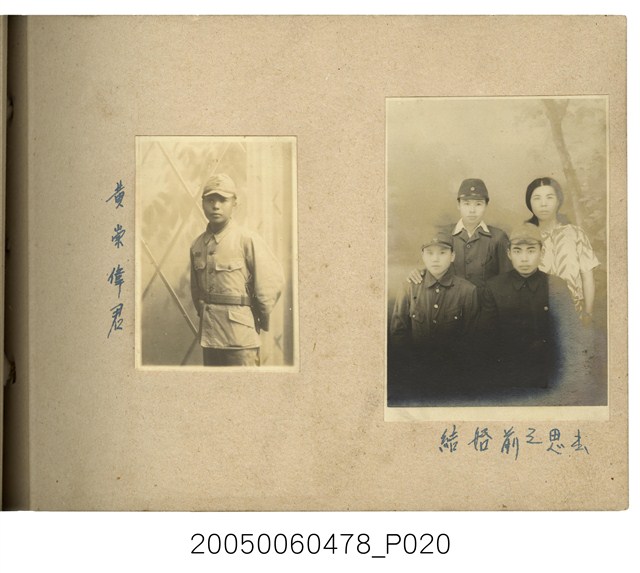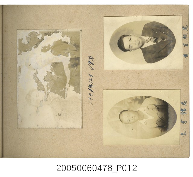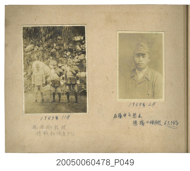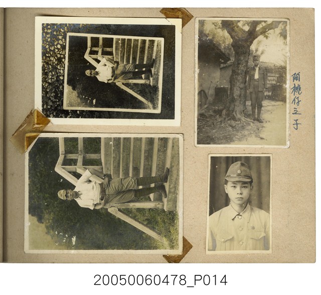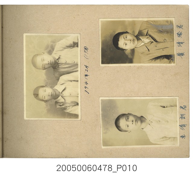 本物件為個人收藏照片相册。册外裝有以藍綠幾何圖樣的布套。相册封面與封底皆為黑色,因採用線裝,册邊貼有強化固定之寬膠帶。內容可分為三部分,第一部分為1942到1959年間個人與親友的照片集錦;第二部分為1943年(主人公19歲),參加臺中州東勢郡「臺灣總督府 勤行報國青年隊」訓練過程照片集;第三部分為題有「景勝之文山郡鳥瞰圖」、「指南宮(仙公廟)」明信片兩張,均為吉田初三郎畫伯筆,前者出自昭和10年(1935)8月10日基隆要塞司令部檢閱濟,以及舉辦喪禮的照片集。