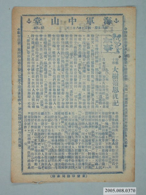 本件保存情況尚可,為雙面印刷。播放的戲院為海軍中山堂。其餘部分為電影潛艇突擊戰、大樹嶺恩仇記。林漢明是位失業的大學生,和高志誠同住不時靠同學何國平的救濟過活,而國平則靠風流寡婦陳瑪莉包養。瑪莉的父親祖蔭是銀行家娶有繼室淑華。漢明在祖蔭的銀行認識了淑華的同學陳美玲,漢明誤會美玲是祖蔭的女兒,而美玲也以為漢明是有錢的公子哥,二人心中都想藉此機會脫離貧窮。在雙方友人鼓勵下,兩人開始交往熱戀。後來瑪莉在認識漢明後看上了他,令美玲醋意大發,在舞會上反過來跟志誠親熱,以圖刺激男友漢明。而後漢明決定正式向陳家提親迎娶美