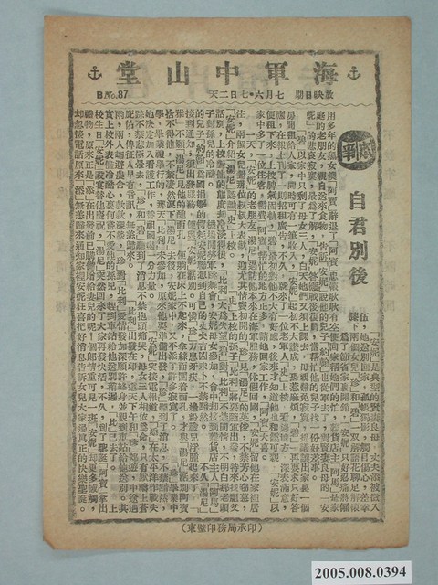 本件保存良好,為單色印刷,為電影飛瀑怒潮廣告單。由瑪麗蓮夢露主演。電影描述一對夫妻至尼加拉瀑布旅遊,誰知妻子早已與情夫密謀想要殺掉丈夫,但反而丈夫先發制人對付妻子。電影單其他部分為電影自君別後Since You Went Away(1944)、電影孽海情天(1953)