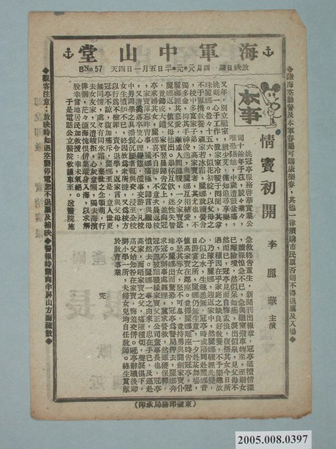 本件保存良好,為單色印刷,為電影寶殿神弓廣告單。電影描述Dardo,一名如同羅賓漢般的男人,與他的追隨者以羅馬時代廢墟為據點一同反抗當地統治者的故事。電影單其他部分為電影長恨在心頭、電影情竇初開
