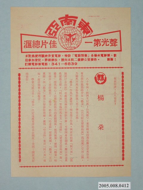本件保存良好,為單色印刷,為電影金牌警校軍廣告單。由史提夫古汀伯格、金卡特拉爾、喬治賈尼斯主演。電影描述一市市長突發奇想,不管是什麼背景的人,只要年齡適合都可以報考警校,於是一群極有個性的人便加入了警校的訓練。電影單其他部分為楊朵Yentl(1983)