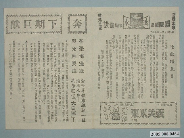 《奔》電影廣告單單張兩面,黑色印刷,外觀保存良好。 半面是遠東戲院「地獄殭屍」本事、另半面是《奔》簡介。背面為《奔》電影宣傳。 《奔》(Flareup (1969))。從拉斯維加斯到洛杉磯最猛的舞女