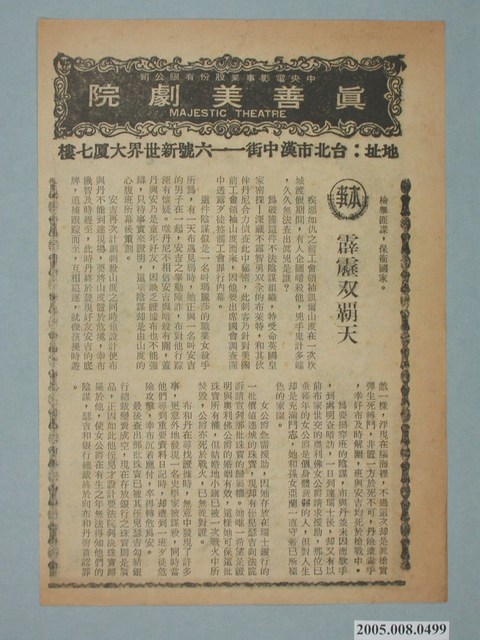 本件保存良好,為大世界戲院出品,躍馬山莊Comes a Horseman電影廣告單。由珍芳達 Jane Fonda、傑遜羅巴遜Jason Robards、詹姆斯肯恩James Caan主演。導演Alan J. Pakula。