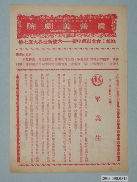 本件保存良好,為真善美戲院出品,穿梭3000年電影廣告單。導演喬納桑比杜。